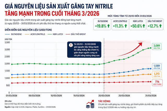 Giá găng tay nitrile tăng trong năm 2026 là kết quả của sự cộng hưởng giữa ba yếu tố: chi phí hóa dầu leo thang, gián đoạn chuỗi cung ứng và tái cấu trúc ngành.